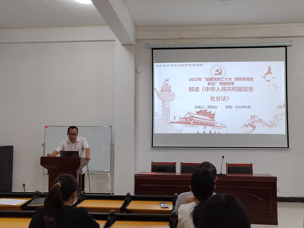 9月8日,路港公司第三黨支部在污水公司多功能室開展2022年“迎接黨的二十大 培根鑄魂建新功”專題黨課活動(dòng),由路港公司第三黨支部書記鄧忠山主講題為《解讀<中華人民共和國公職人員政務(wù)處分法>》的專題黨課,污水公司全體員工參加學(xué)習(xí)。