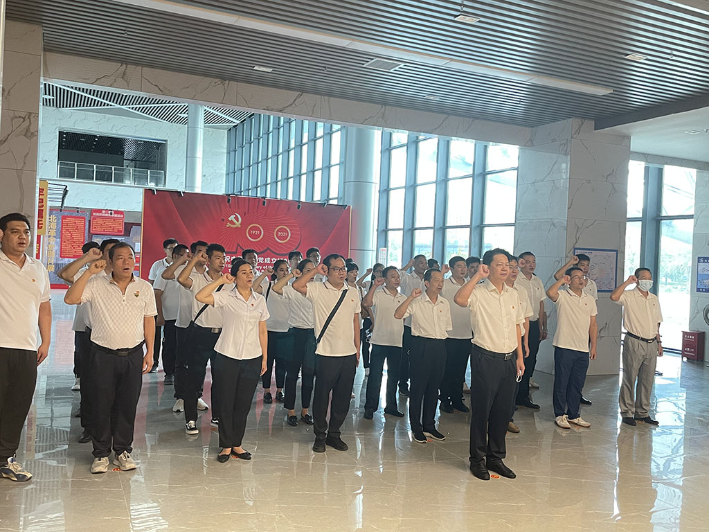 參觀完展覽后,李忠總經(jīng)理帶領(lǐng)全體黨員重溫入黨誓詞,并給大家上了一節(jié)生動(dòng)的現(xiàn)場“微黨課”。路港公司作為北海市一個(gè)重要的平臺(tái)企業(yè),肩負(fù)著北海向海經(jīng)濟(jì)項(xiàng)目建設(shè)重任,李忠總經(jīng)理分析了路港公司的危與機(jī)、時(shí)與勢,強(qiáng)調(diào)現(xiàn)在公司處在轉(zhuǎn)型發(fā)展的關(guān)鍵時(shí)期,要像革命先輩們一樣向前沖鋒,沒有任何退路。他要求全體黨員干部要牢記黨的光輝歷程,從百年黨史中汲取力量,繼承并發(fā)揚(yáng)共產(chǎn)黨人百折不撓、艱苦奮斗的精神,保持“干就干最好、爭就爭第一”的工作勁頭和“時(shí)不分晝夜、事不分你我”的工作作風(fēng),積極發(fā)揮共產(chǎn)黨員中流砥柱和先鋒模范作用,凝心聚力、踔厲奮發(fā),助推公司突破瓶頸實(shí)現(xiàn)新跨越。