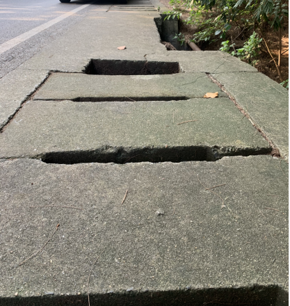 為徹底解決安全隱患,工作人員使用切割機(jī)將缺口兩端混凝土切除后,鑿開頂面部分混凝土形成支座,再根據(jù)缺口尺寸預(yù)制混凝土板,待混凝土板成型后安裝。歷時(shí)兩天,工作人員將排水邊溝缺口修繕完畢。