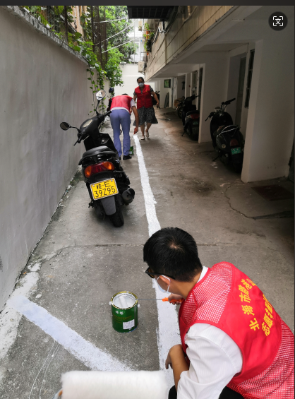 活動中,志愿者分組分工,掃地、拉線、貼膠帶、刷油漆,對停車位進行全面更新,按照“以人為本、合理規(guī)劃、方便居民”的原則,規(guī)劃停車線,小區(qū)面貌更加整潔有序,進一步優(yōu)化人居環(huán)境,用實際行動助力全國文明城市創(chuàng)建工作。經(jīng)過大家的辛勤勞動,一條條停車“小白線”呈現(xiàn)在民眼前,不僅提高了小區(qū)有限空間利用率,而且最大限度滿足居民停車需求,讓全體居民共享公共資源,為居民群眾營造了有序、暢通、安全的出行環(huán)境,獲得居民的紛紛好評。