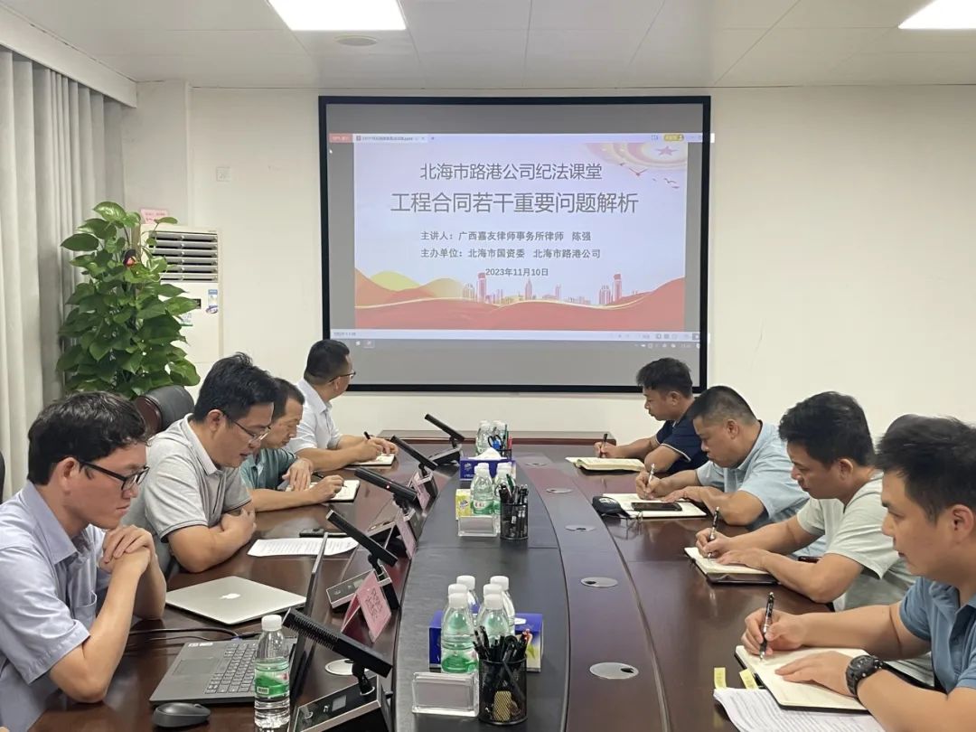 11月10日,北海市路港公司在公司五樓會議室舉辦紀(jì)法課堂專題講座,特邀廣西嘉友律師事務(wù)所陳強律師作題為《工程合同若干重要問題解析》專題講座。公司工程一部、工程二部、發(fā)展部等7個部門50余人參加。